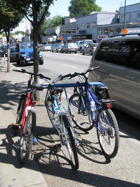 溫哥華雖然不像阿姆斯特丹,大馬路上都有腳踏車專用道,但是這裡到處有許多小路都適合給腳踏車騎的。通常分成腳踏車專用,這是最理想的,因為不用跟汽車搶道路。另外就是跟汽車共享,通常這種的道路都是比較小條的路,一路上都有一些小路障,讓車子不能開很快,所以比較不會跟騎士發生意外。